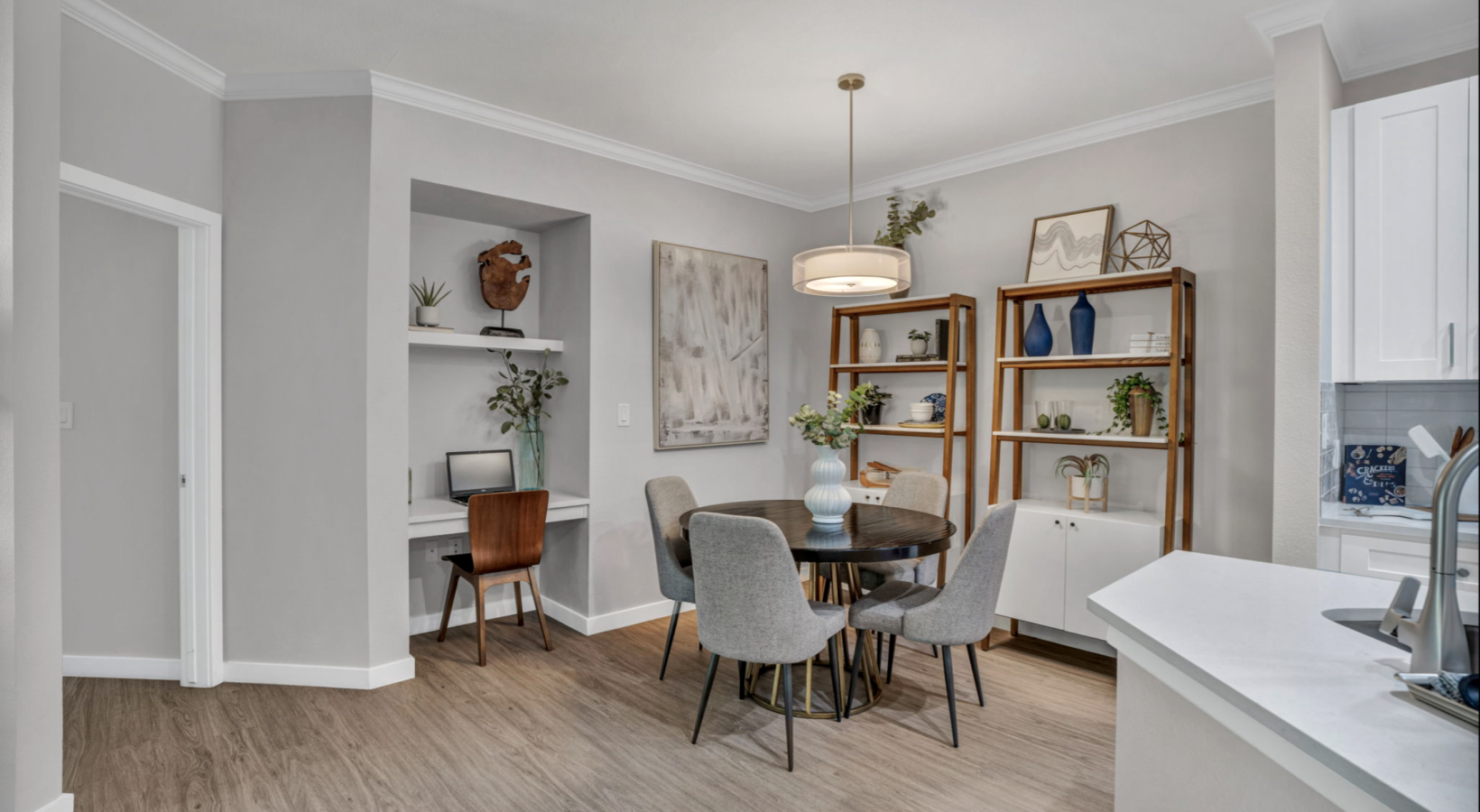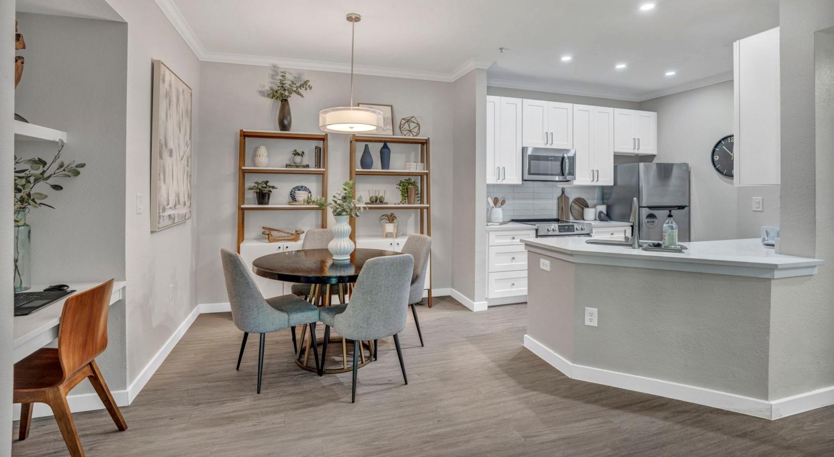 • a kitchen with a dining table and chairs