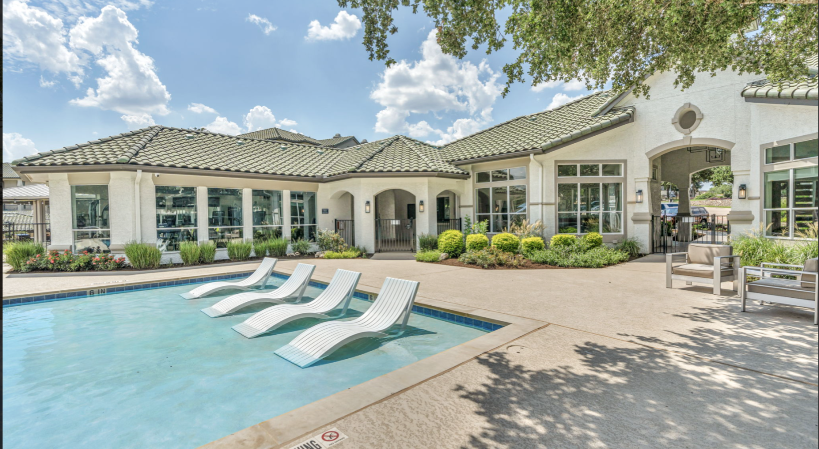 • a pool in front of a building